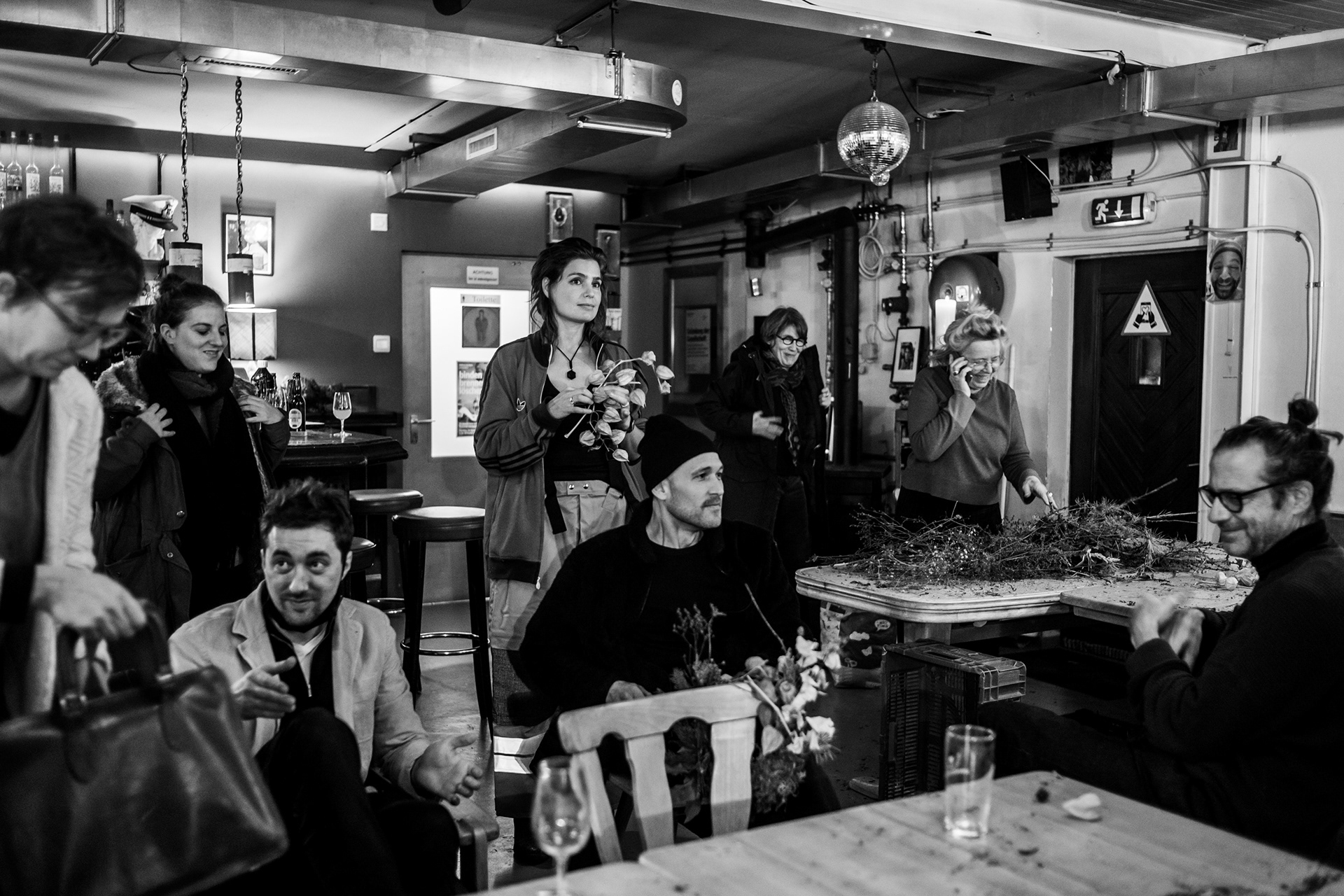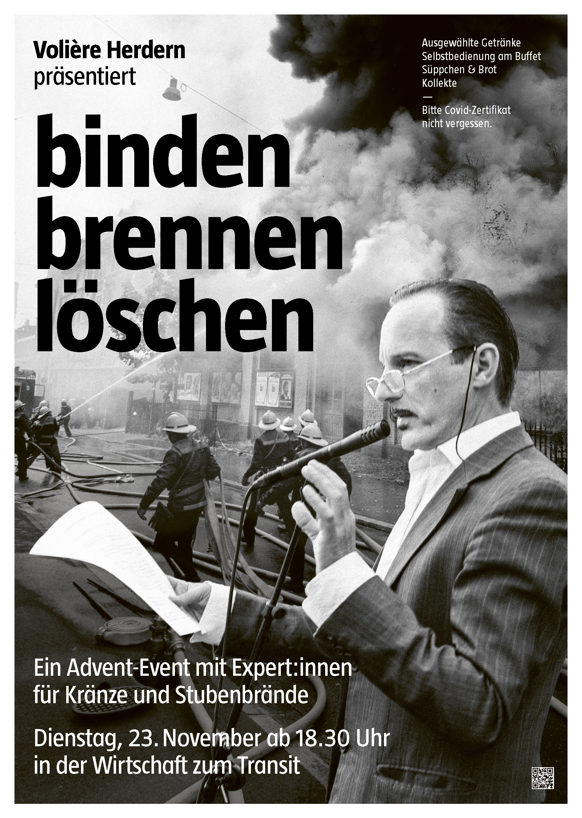Floristin Eva Bachmann führt einen Workshop zum Kranzbinden durch, während uns Feuerwehrkommandantin Sutter über Sicherheitsaspekte zur Jahreswende informiert. Professor Wolf erlaubt sich einen Querverweis auf den 2. Hauptsatz der Thermodynamik, woraufhin Frau Lieb eines ihrer Lieblingsgedichte vorträgt. Nun ein weiterer Höhepunkt – die praktische Übung: Ein Kranz geht in Flammen auf und Frau Sutter demonstriert zwei verschiedene Löschtechniken. Der Abend schliesst mit einem Duett: die Kommandantin singt Johnny Cash «Ring of Fire» in Begleitung von Dr. Scheinbar. 23. November 2021